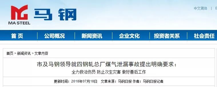 18日,馬鋼官方網(wǎng)站發(fā)布關(guān)于此事故事的通報(bào)——